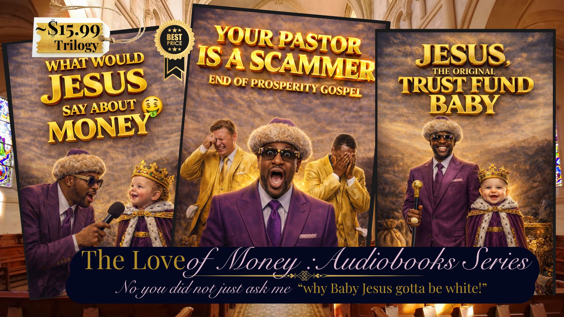 The Love of Money Audiobooks TRILOGY deliver hard truths wrapped in humor, satire, and fearless honesty. Bold, funny, and uncomfortable in the best way, they challenge modern faith, money myths, and religious manipulation.